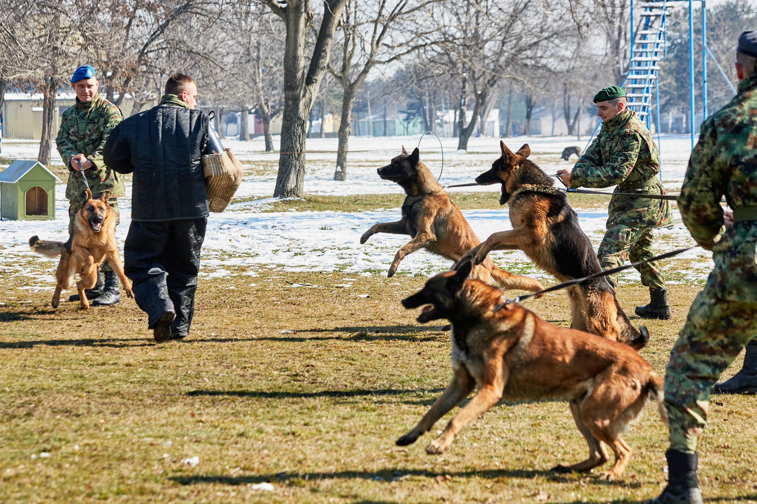 Training for the guard service is only one of many training forms carried out by the Dog Training Center — a specialized SAF unit intended for training, health care, breeding and reproduction of MWDs, as well as training and career development of veterinary service personnel — helping with the improvement of security of property used by the Serbian Armed Forces.