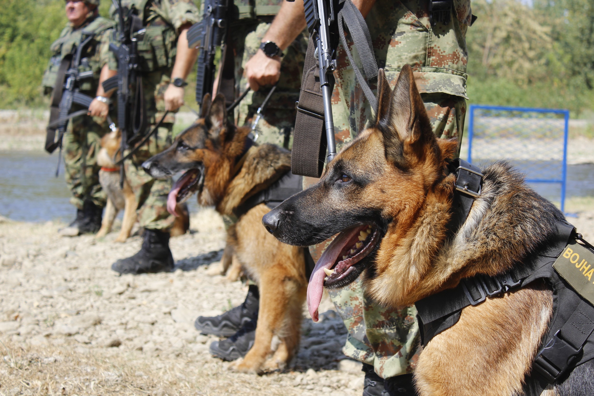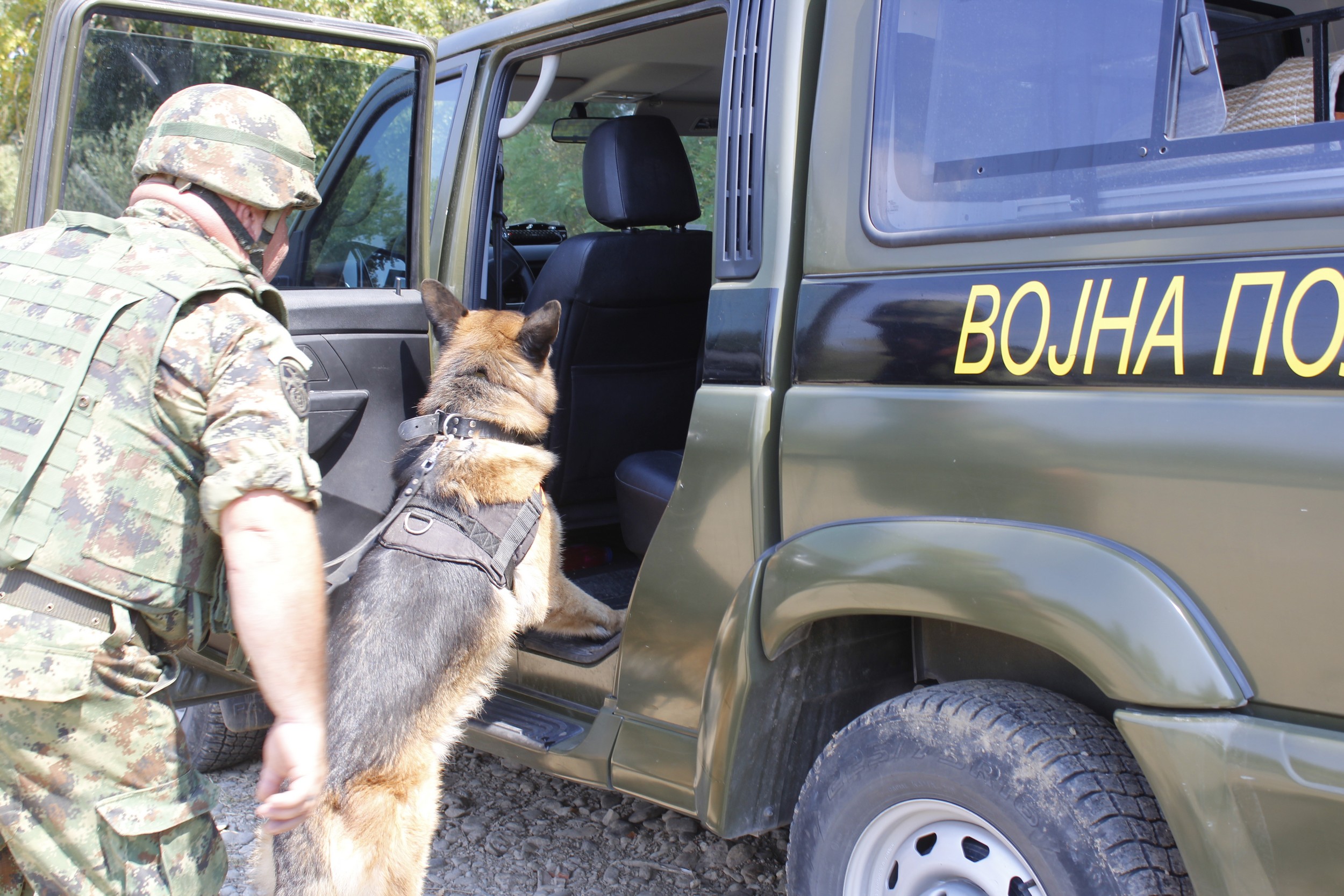Members of the MP Battalion of the Army underwent training in performing specific MP tasks with the use of MWDs in the exercise area in the vicinity of Niš.