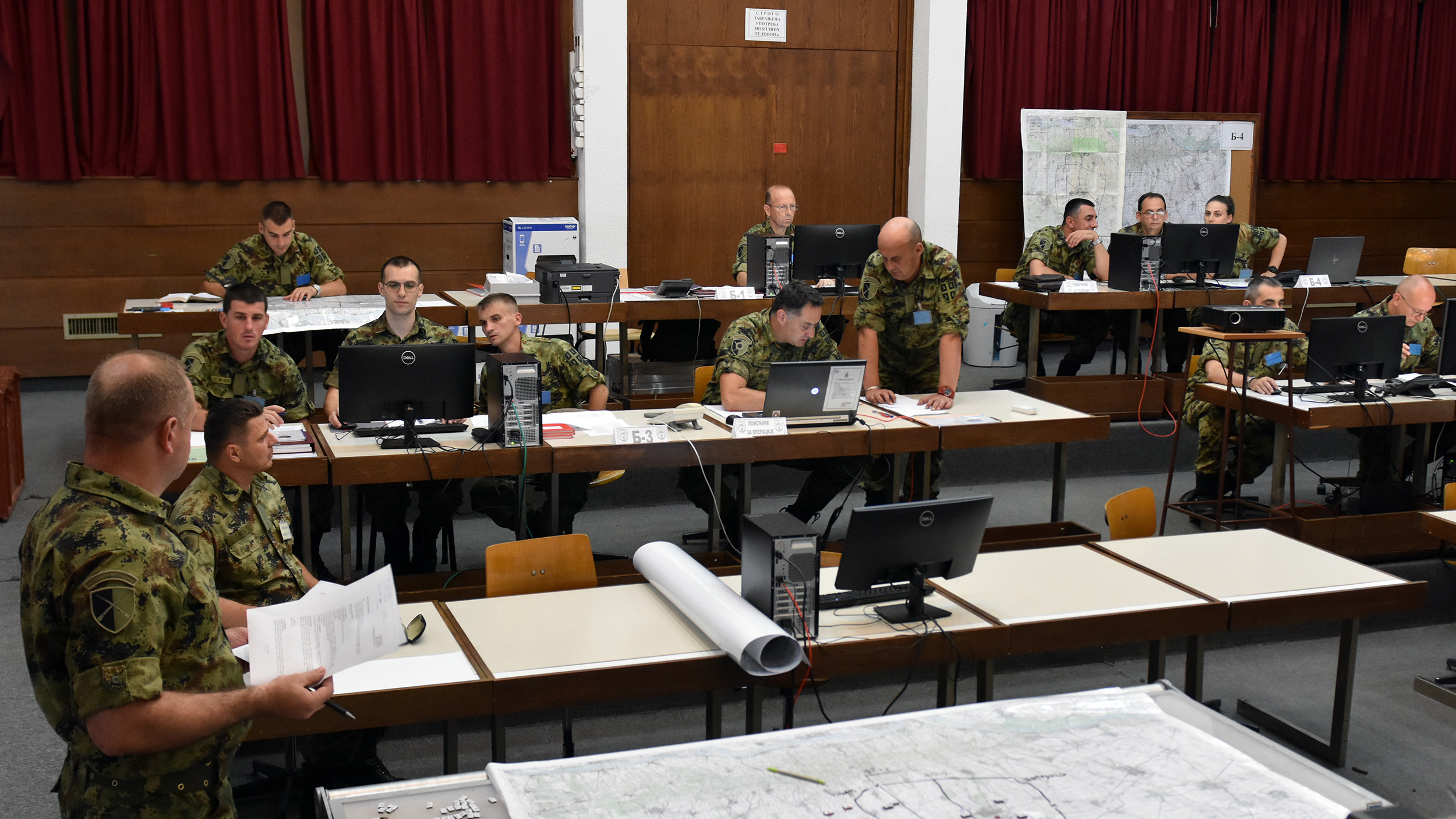 In accordance with the assigned scenario, officers and NCOs are practicing staff procedures in the process of making military decisions and implementing tactical scenarios they could encounter while conducting combat operations. The exercise also tests the knowledge of the principles behind the use of territorial forces on operations, interoperability with the Army, Air Force and Air Defense units, as well as cooperation with civilian elements.