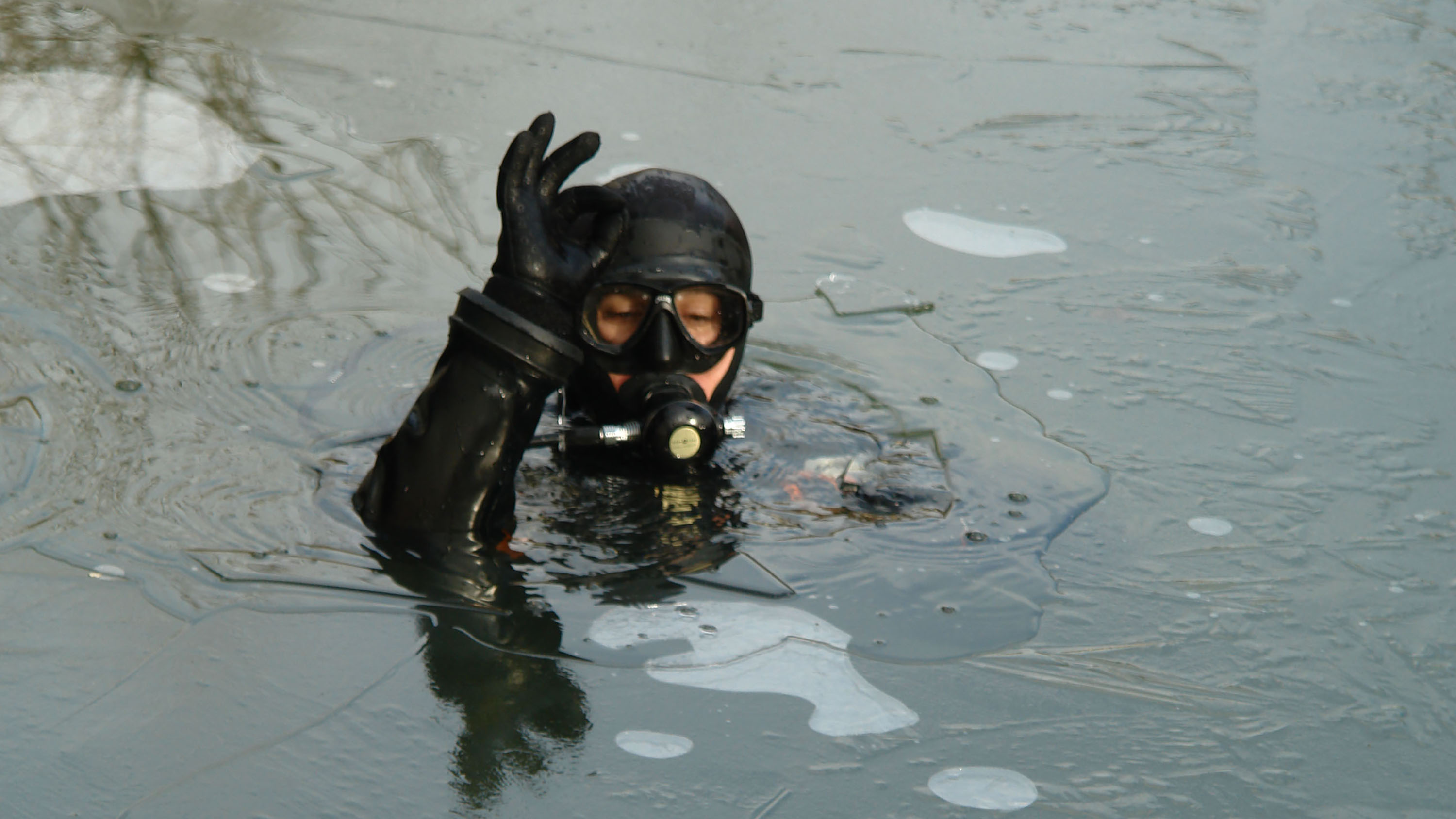 Performing dives in the conditions of reduced visibility, at very low temperatures, when ice often forms on rivers and canals, is one of the greatest challenges for divers, which is why regular training in winter conditions is an unavoidable part of training.