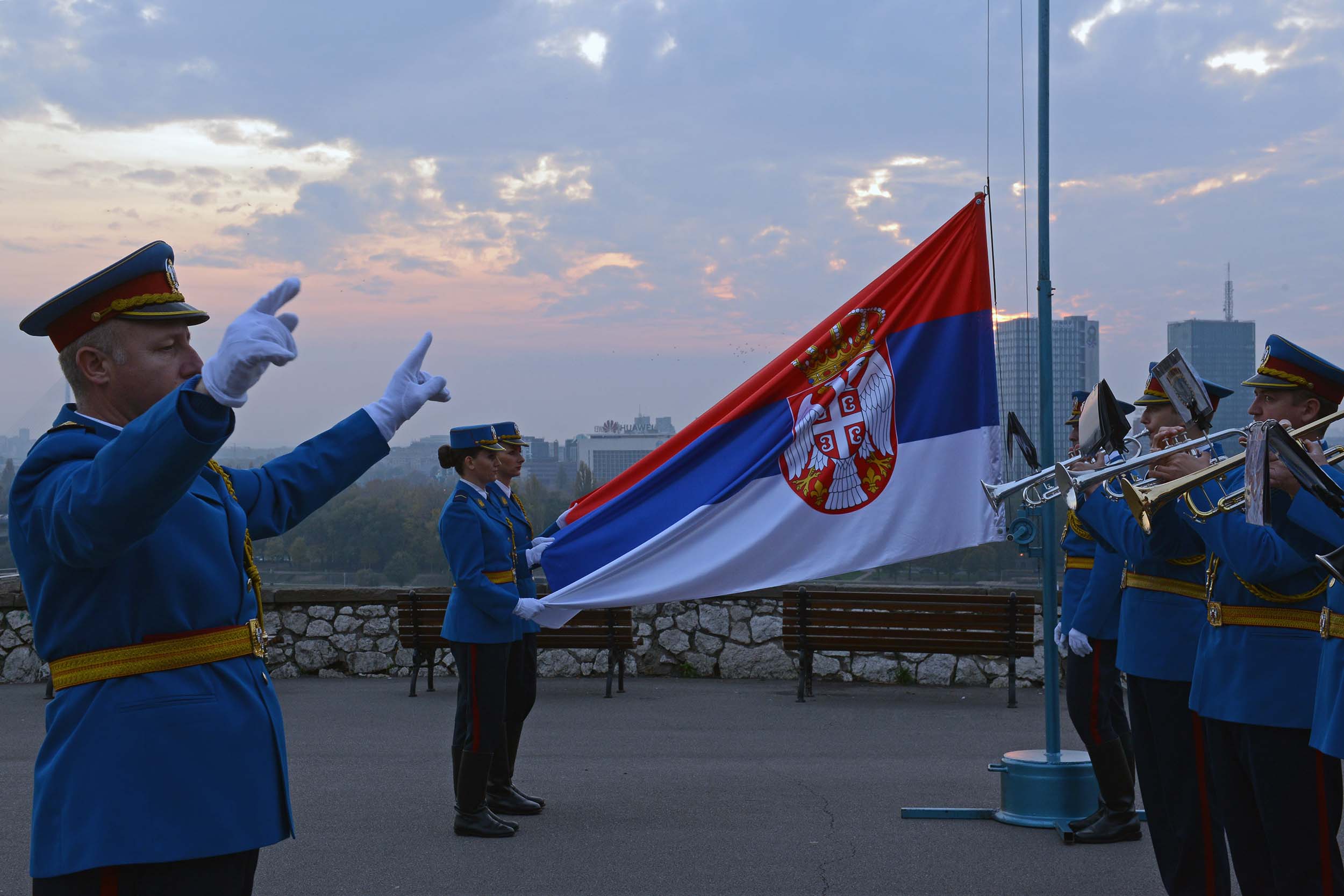 The representative Guard Orchestra played the national anthem "God of Justice" as the flag of the Republic of Serbia was being raised.