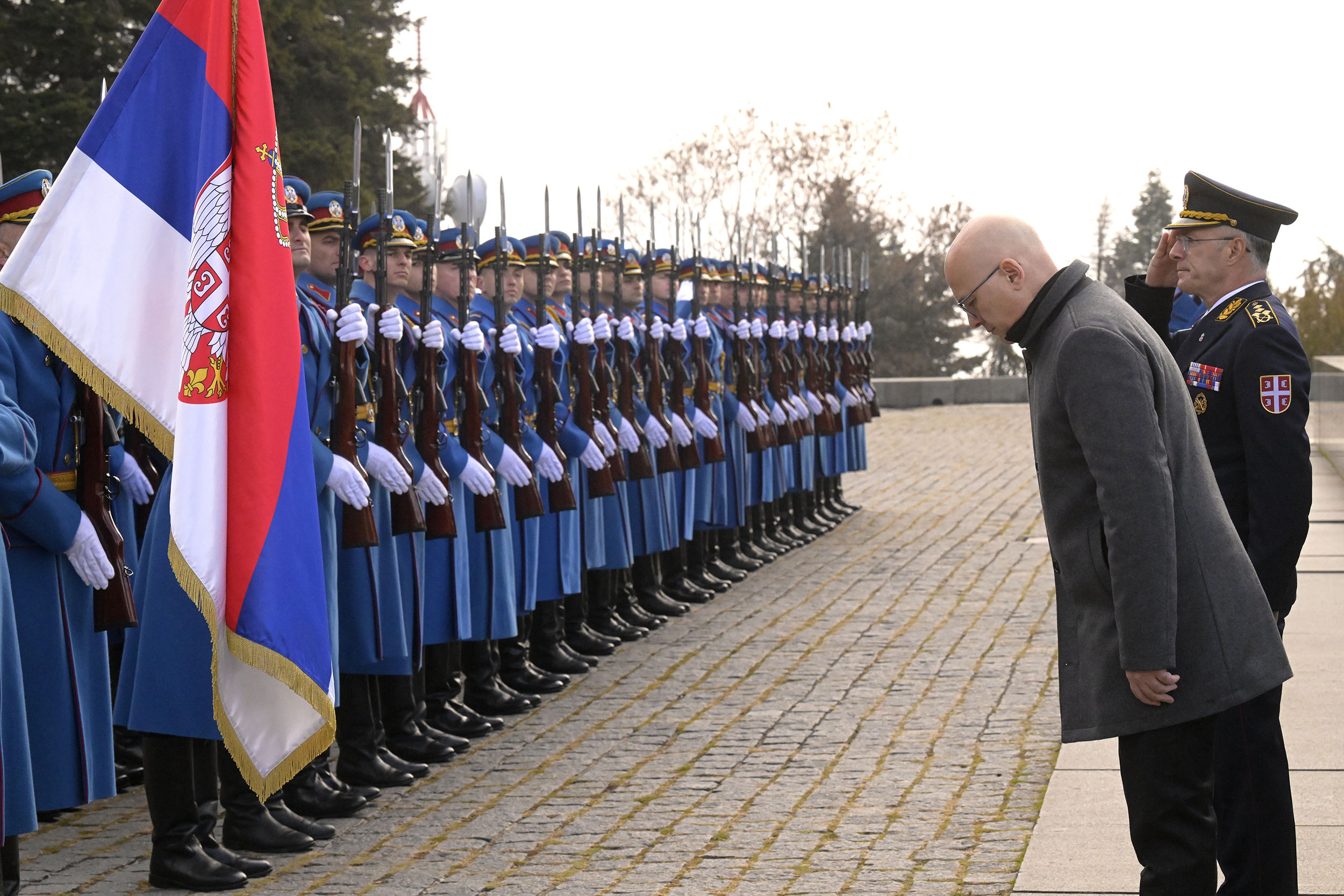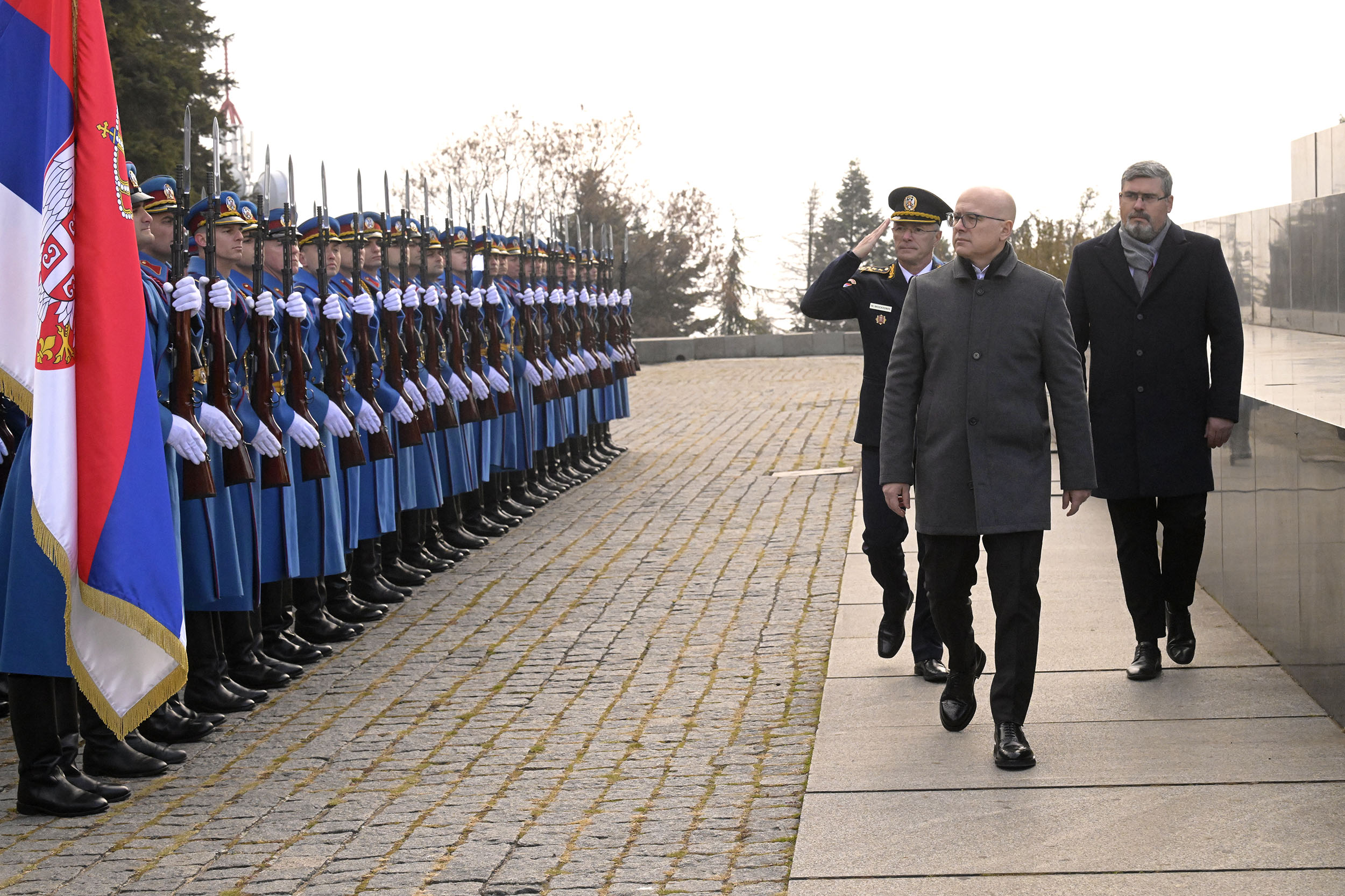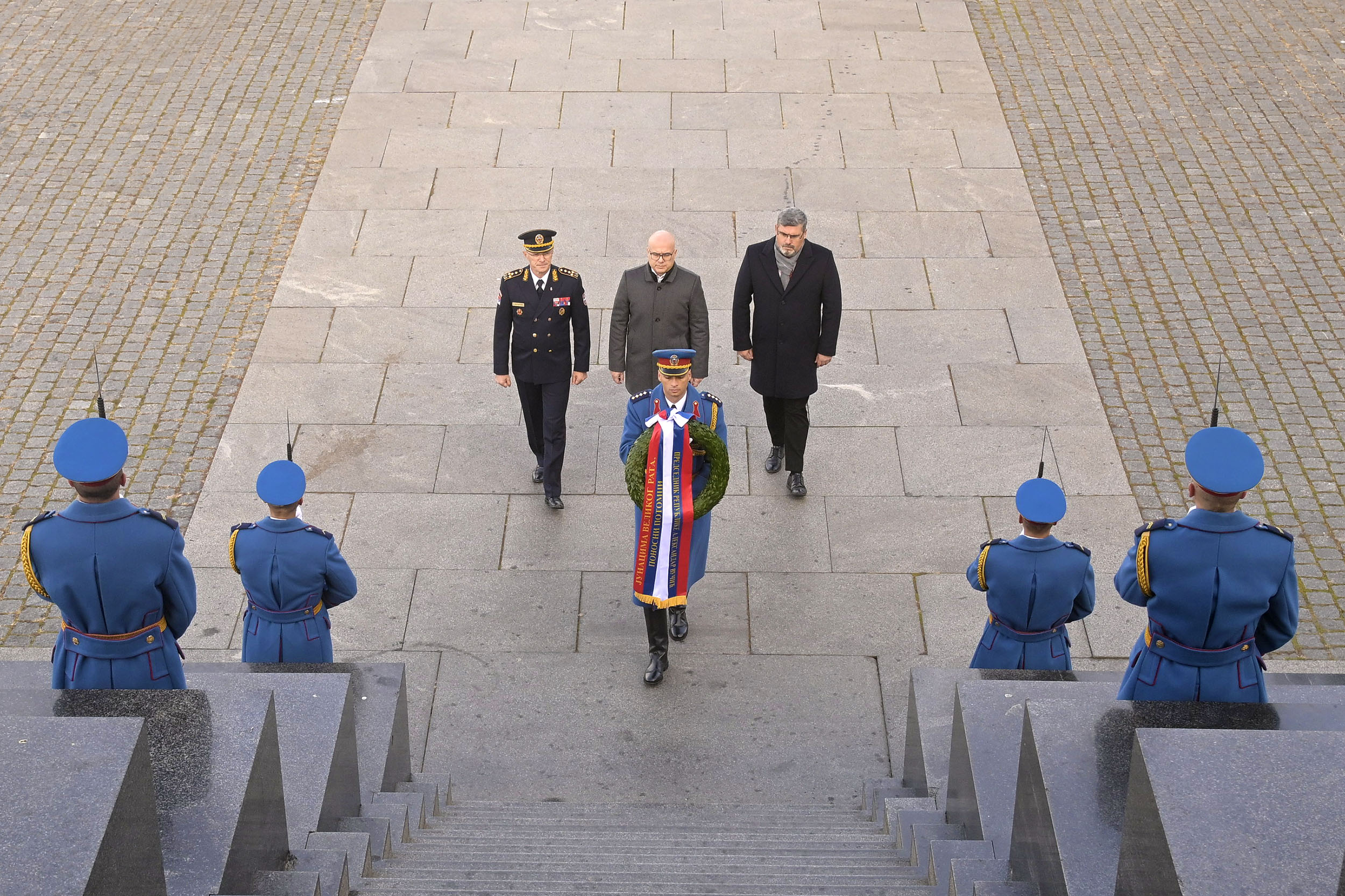 Representing the Supreme Commander of the Serbian Armed Forces and President of the Republic Aleksandar Vučić, Serbian Prime Minister Miloš Vučević laid a wreath at the Monument to the Unknown Hero on Mt. Avala in commemoration of the World War I Armistice Day.