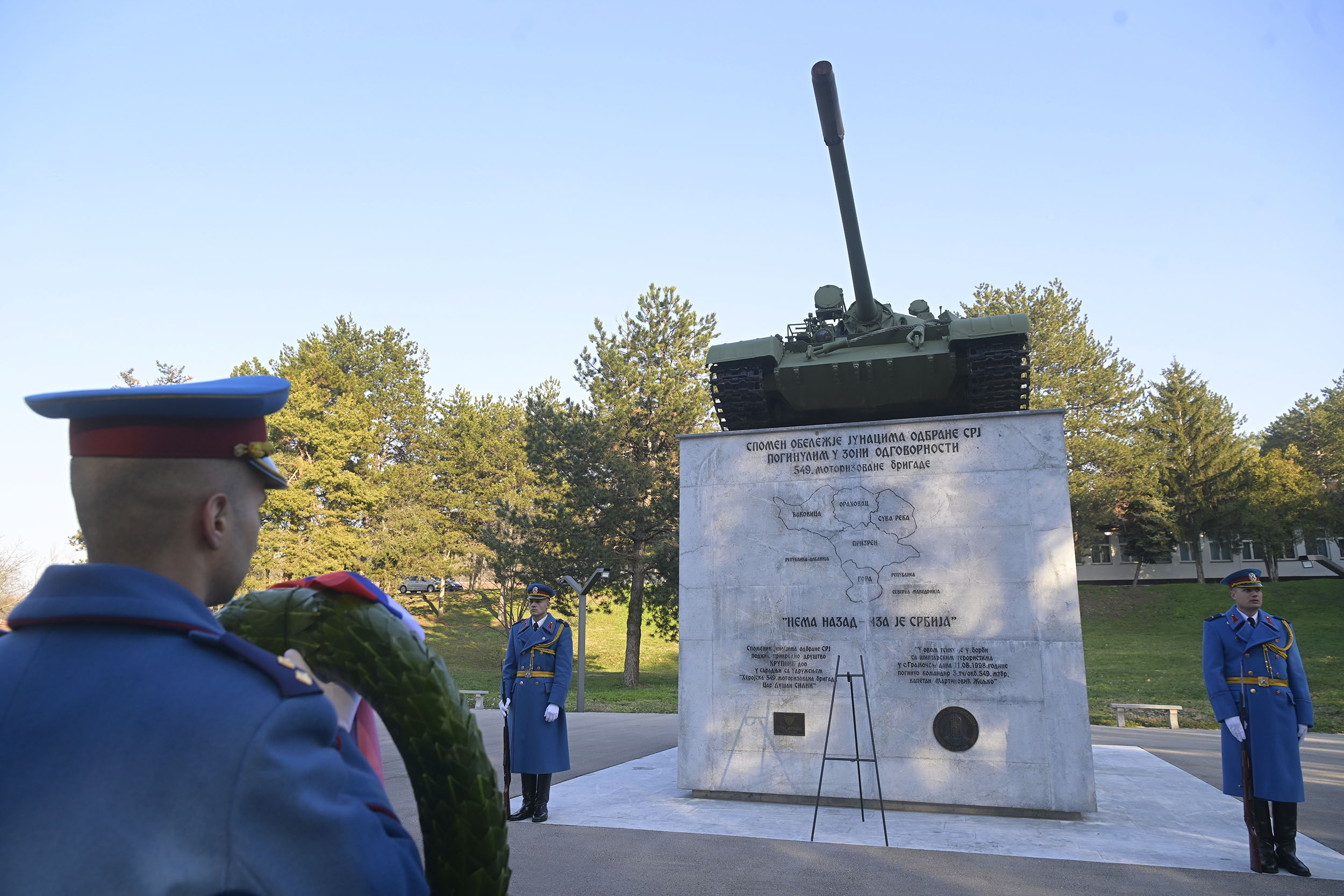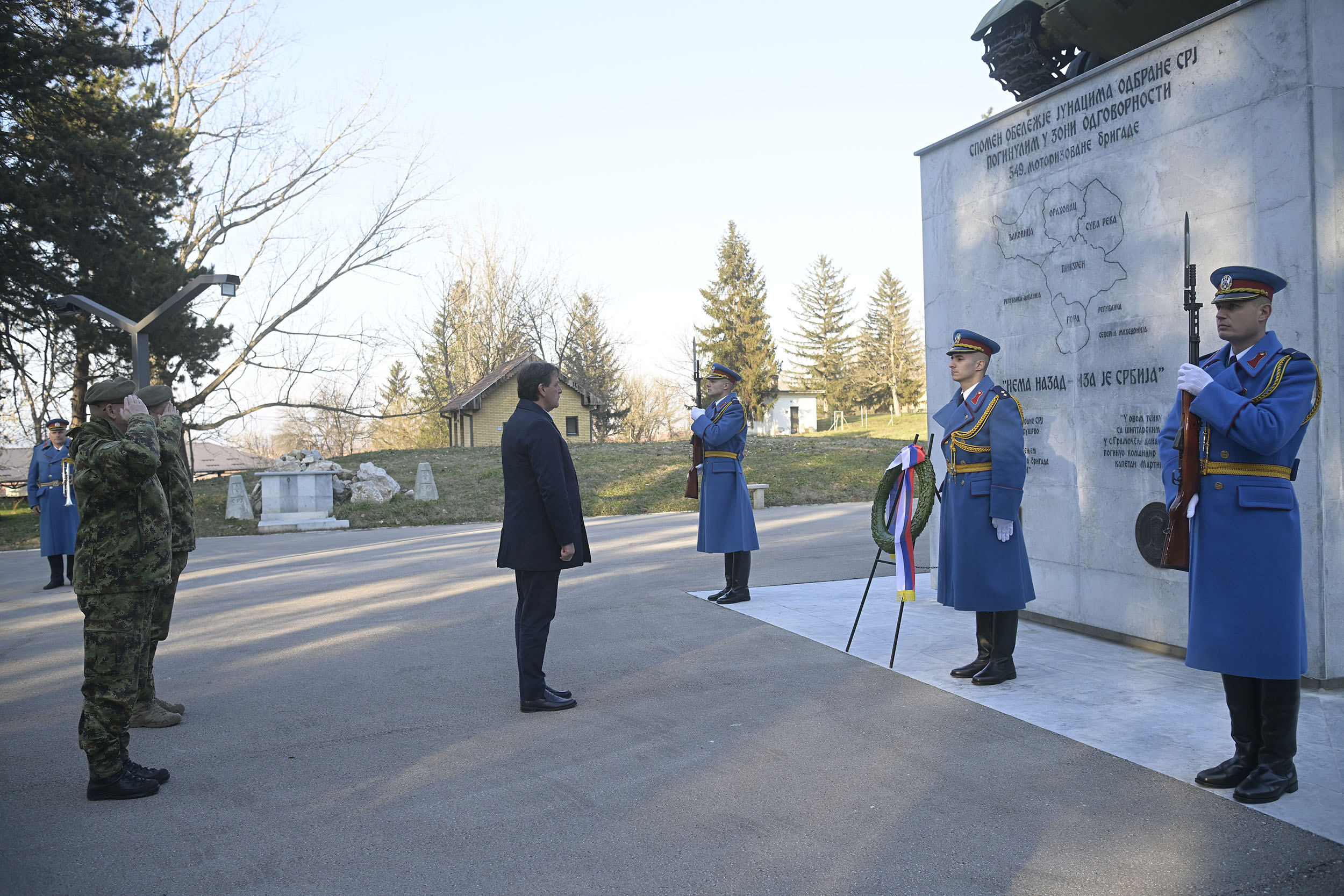 At the memorial in the Leskovac barracks, the Minister of Defense paid tribute to the heroes of the defense of the Federal Republic of Yugoslavia who were killed in the area of responsibility of the 549th Motorized Brigade.