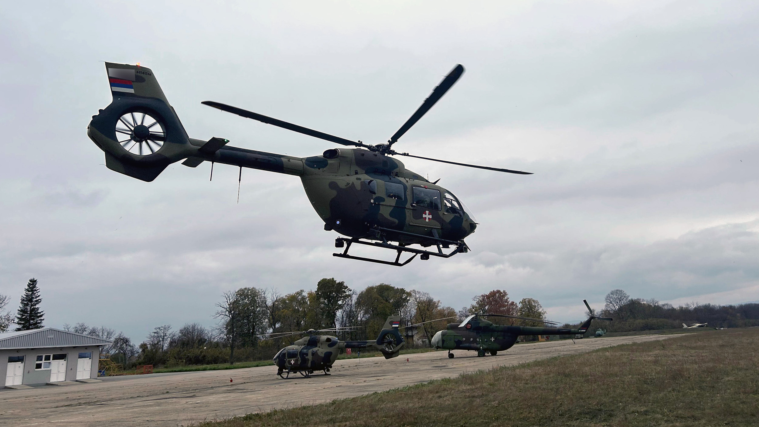 Members of the 98th Air Force Brigade are training to perform flying tasks with H-145M helicopters at Sergeant Pilot Mihajlo Petrović Military Airfield and in an area surrounding Niš.