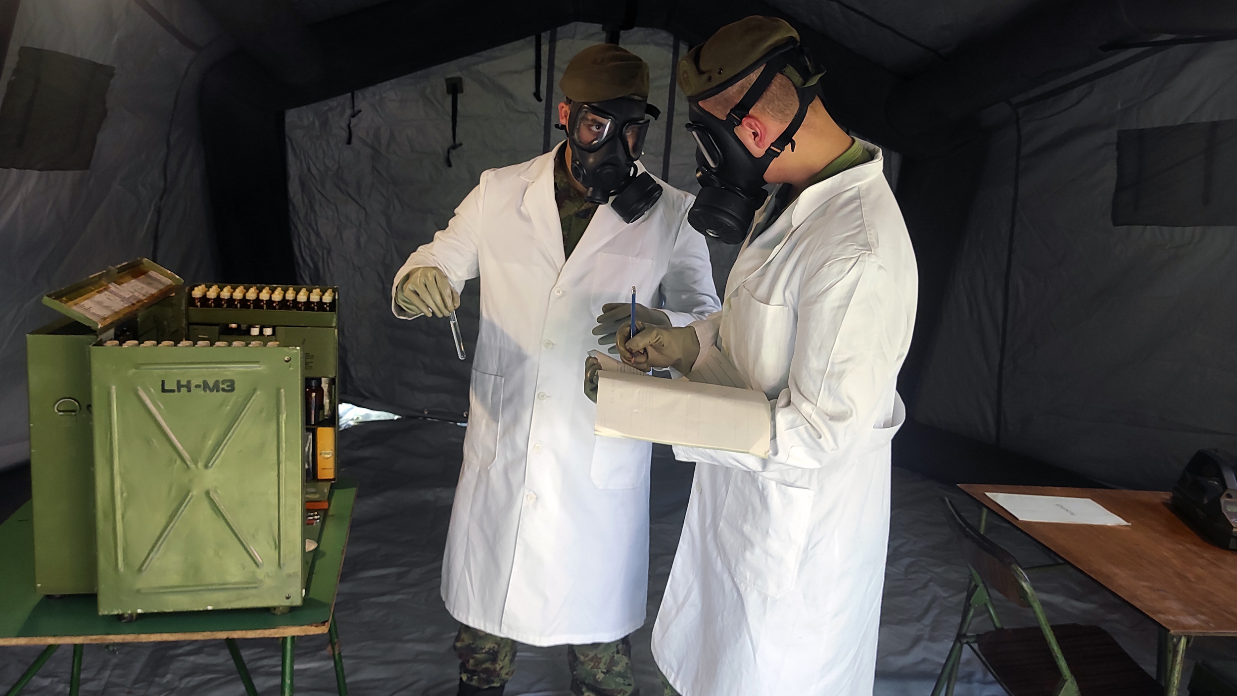 During the training, members of this unit practice the procedures needed for working in a contaminated environment, from developing a laboratory station in the field conditions, detection, proper taking and analytical processing of potentially contaminated samples, to undertaking protective measures in case of nuclear or chemical attack. The training process involves using portable radiometric and chemical laboratories, the latest detectors and modern insulating equipment which provides a complete protection of personnel while working with contaminants.