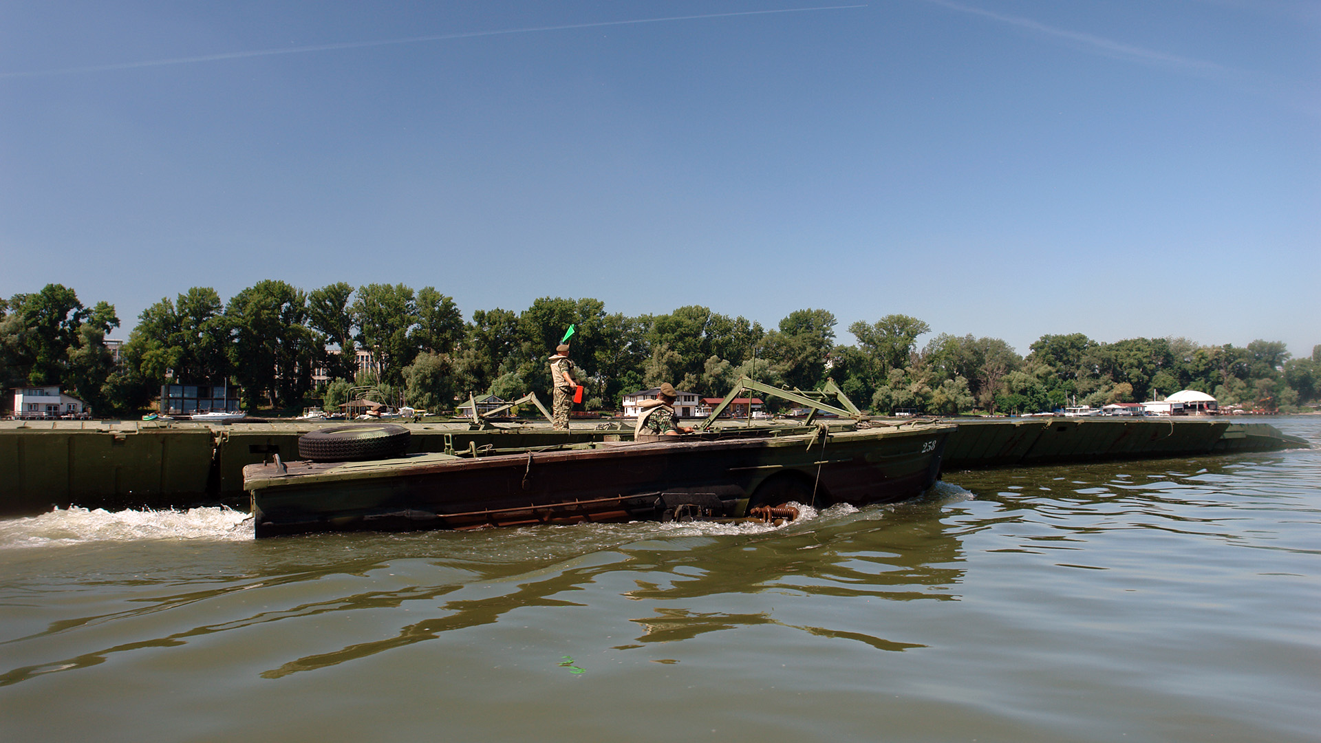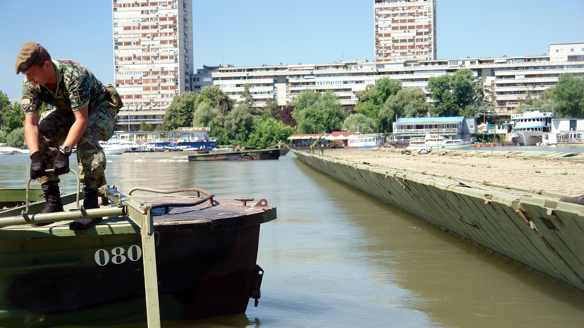 Припадници Првог понтонирског батаљона, из састава Речне флотиле, поставили су понтонски мост преко Дунава и тако градску плажу Лидо на Великом ратном острву спојили са земунским делом обале.