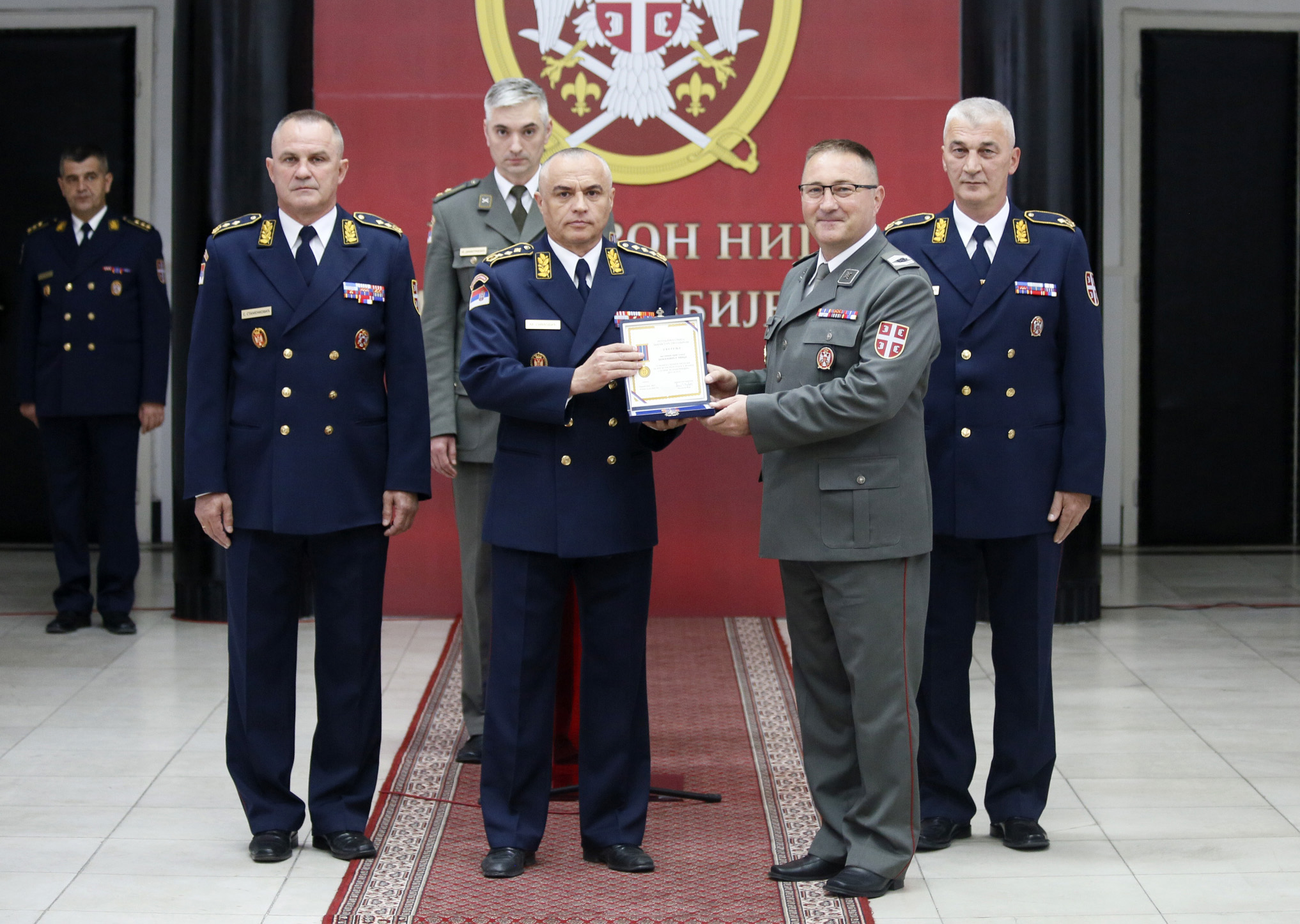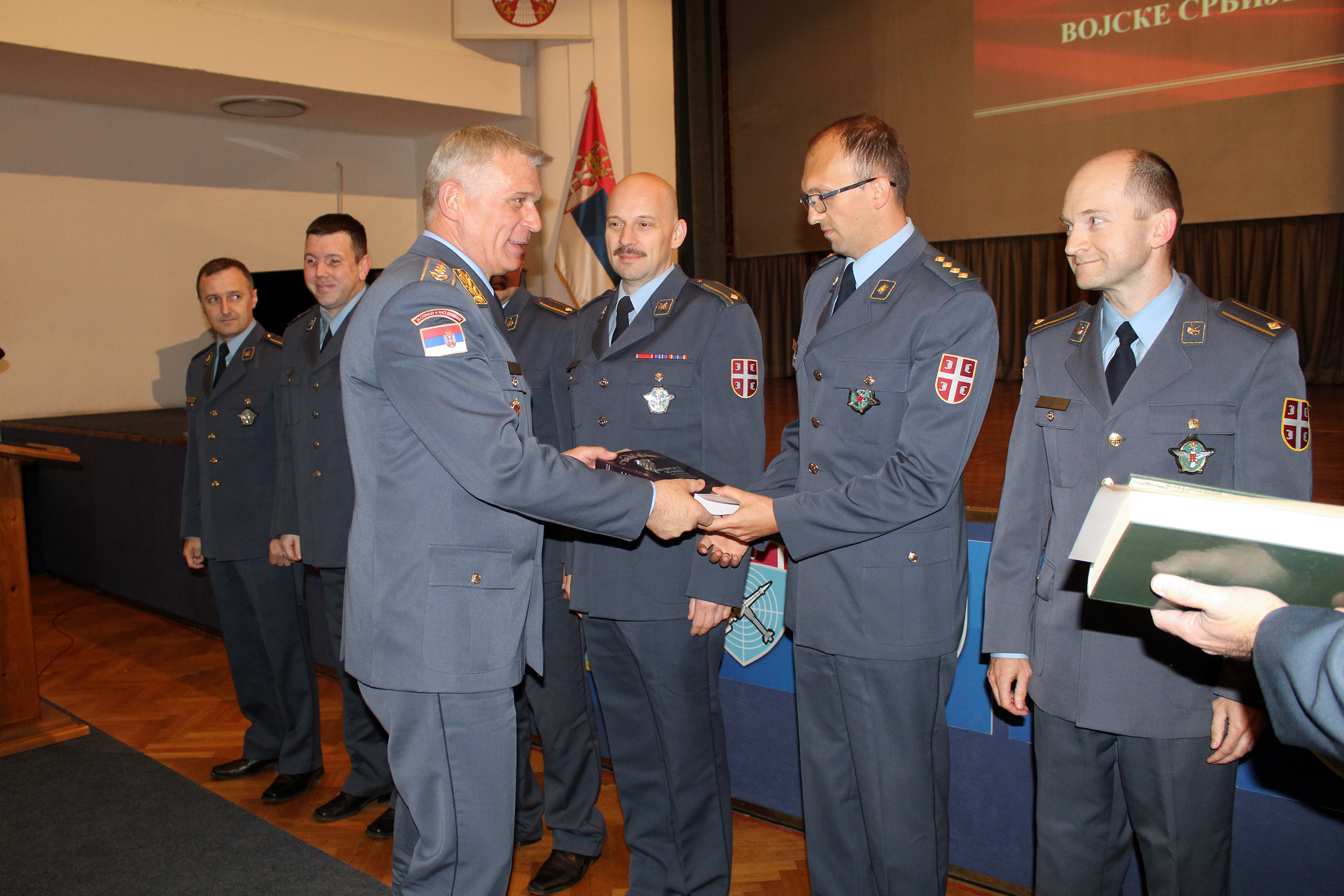 Za izuzetan doprinos u razvoju sposobnosti Vojske Srbije, načelnik Generalštaba je ovom prilikom ministru odbrane Milošu Vučeviću uručio Zlatnu plaketu Vojske Srbije.