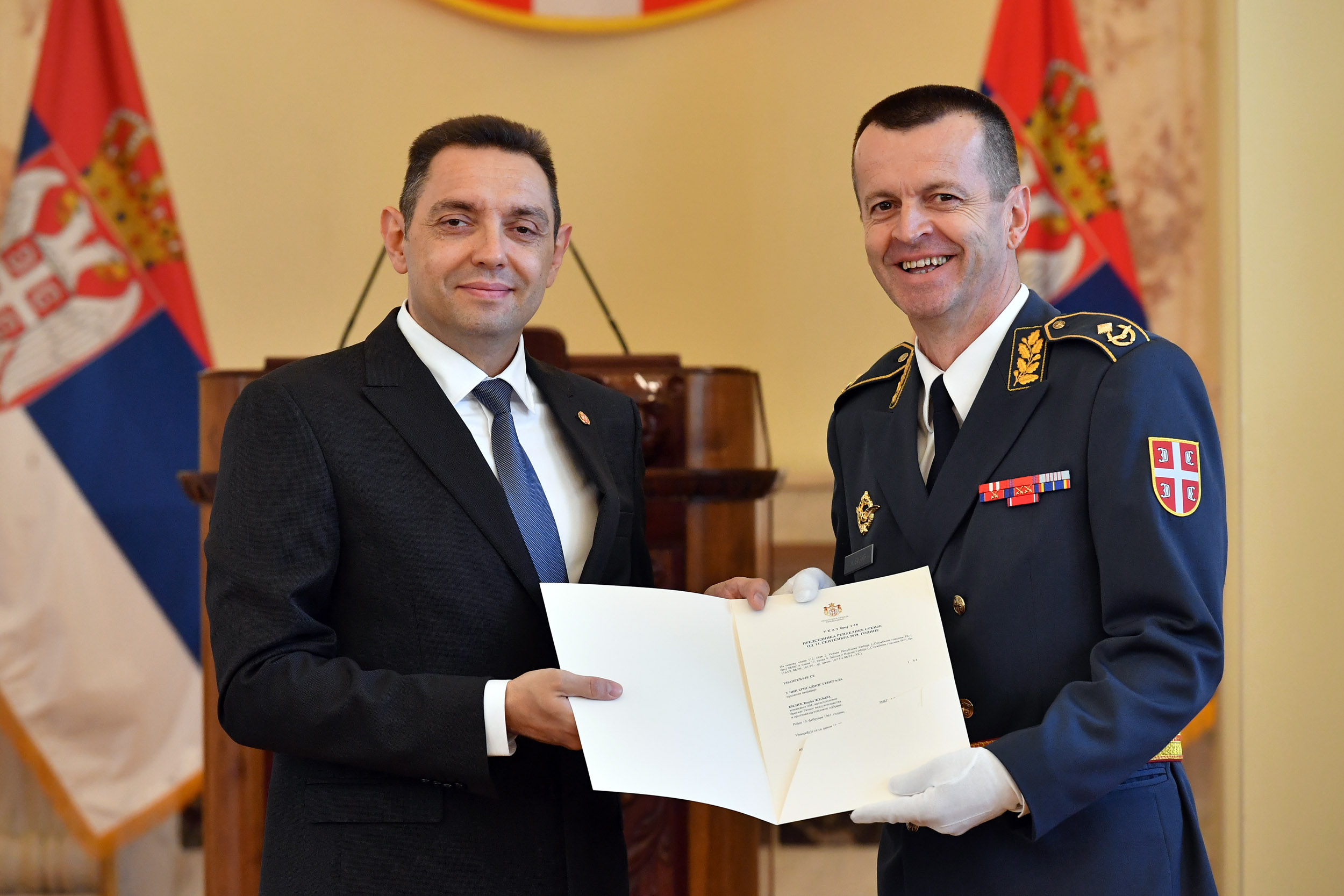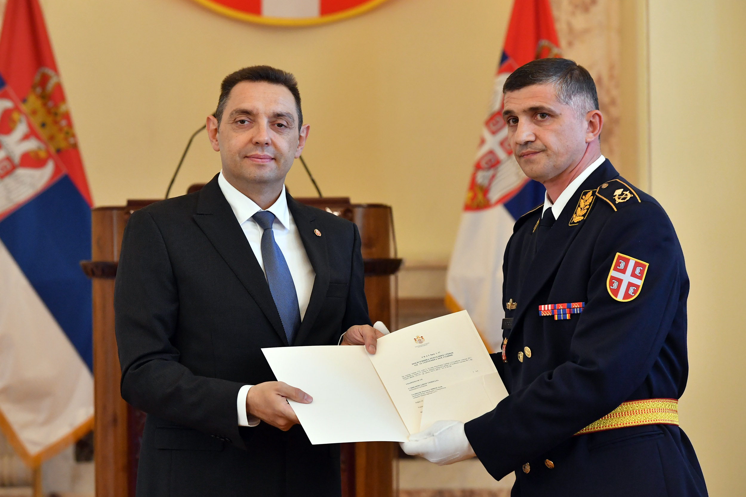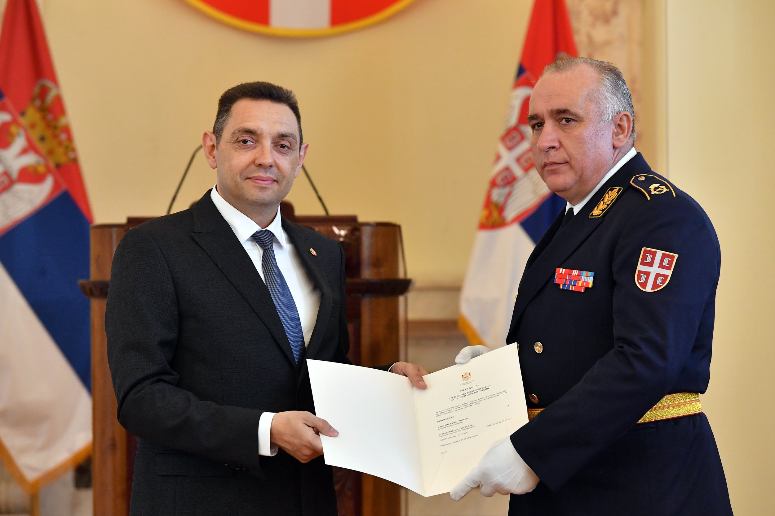 Ministar Vulin čestitao je, u ime predsednika Republike i vrhovnog komandanta Vojske Srbije, svim unapređenim i novopostavljenim oficirima i oficirima koji na lični zahtev napuštaju profesionalnu vojnu službu.
