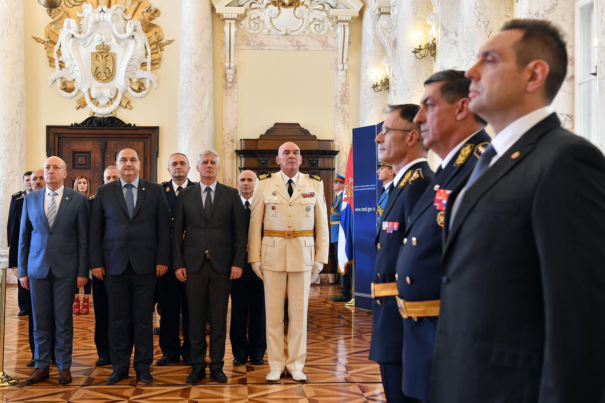 Svečanost povodom uručenja ukaza predsednika Republike Srbije i primopredaje dužnosti načelnika Generalštaba Vojske Srbije održana je danas u Velikoj ratnoj sali Starog Generalštaba u Beogradu, u prisustvu ministra odbrane Aleksandra Vulina.