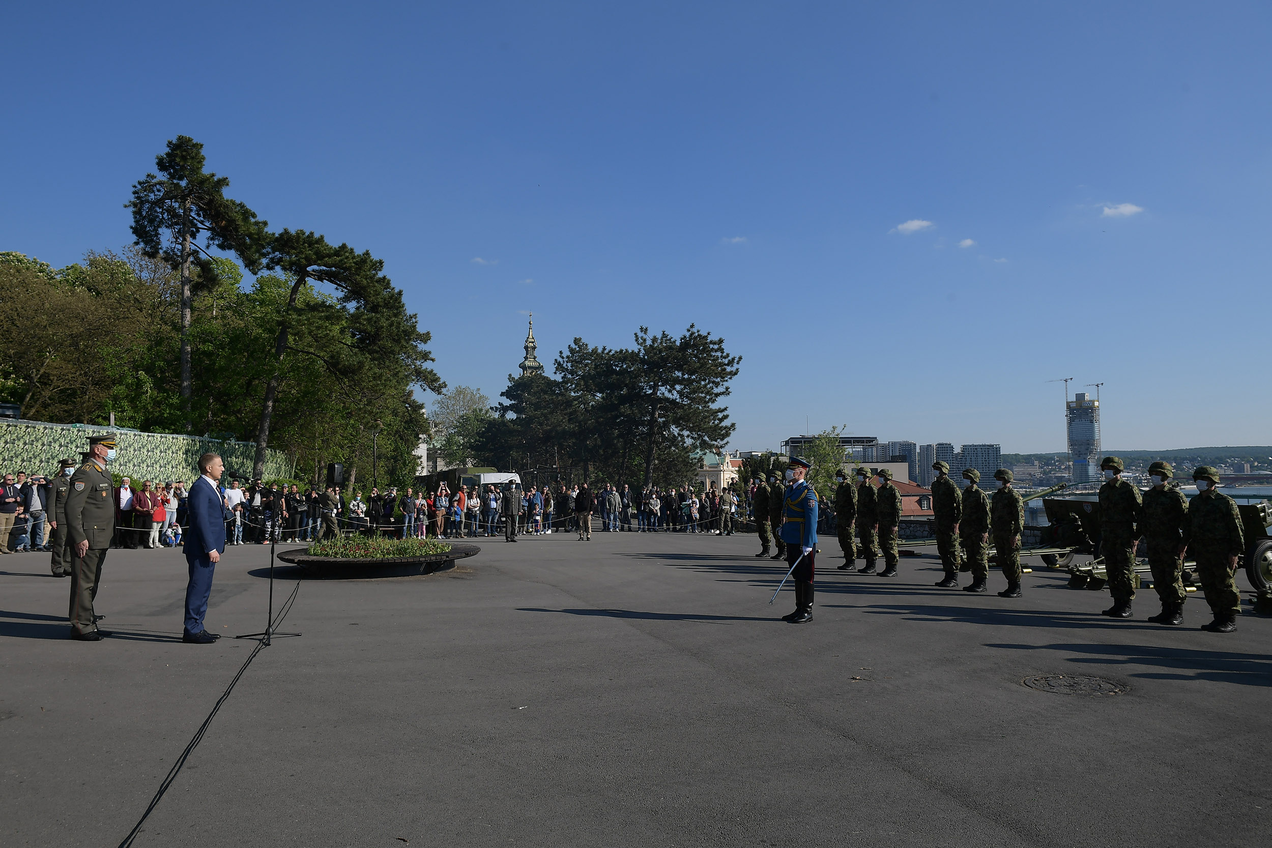 Počasnoj paljbi na Savskoj terasi na Kalemegdanu prisustvovali su potpredsednik Vlade i ministar odbrane dr Nebojša Stefanović i komandant Garde general-major Milomir Todorović.