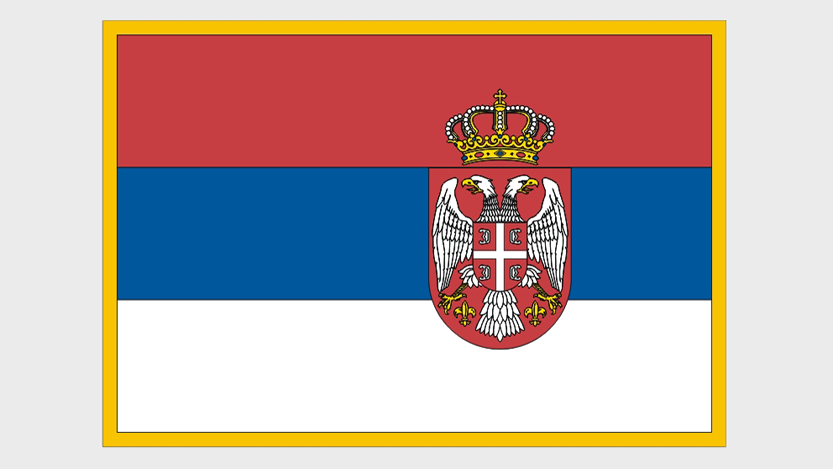 Na desnoj strani glavnog dela vojne zastave, kada je zastava u položaju za pozdrav, nalazi se srpska trobojka sa Malim grbom na sredini zastave.